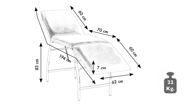 Lettino professionale 3 zone con struttura in acciaio tubolare, con diametro di 30 mm, verniciato a polvere epossidica, di colore bianco.