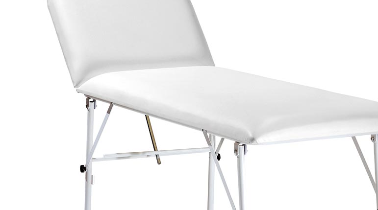 Il lettino per massaggi pieghevole per estetista 2 zone, ha una struttura in acciaio diametro 22 mm verniciato a polvere epossidica colore bianco e riesce a sopportare un peso massimo di 310 kg.