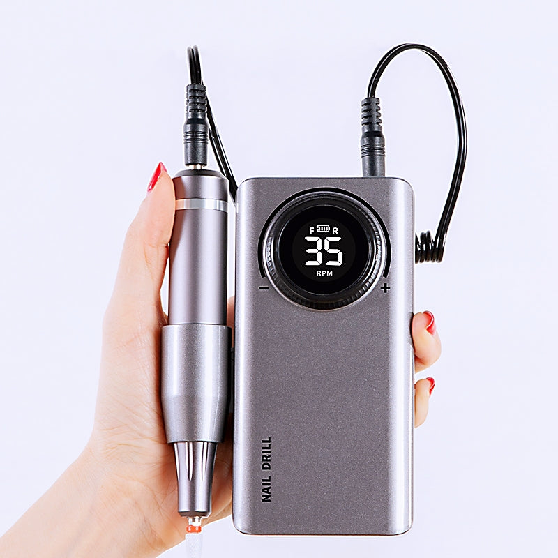 Nail Drill portatile professionale con batteria a litio a lunga durata. Utilizzabile con e senza fili. Nella confezione è compreso un kit di frese base universale