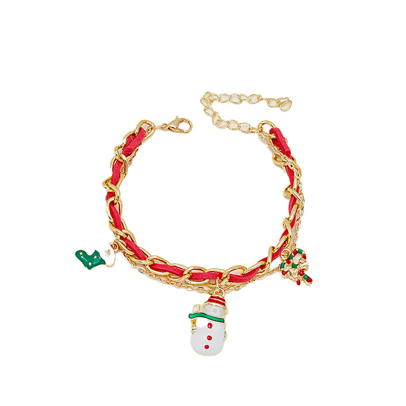 Braccialetto Natalizio in cuoio e metallo, con ciondoli natalizi.