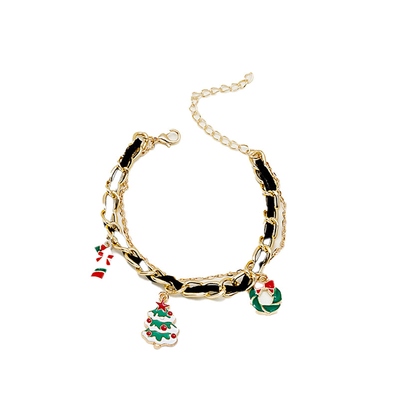 Braccialetto Natalizio in cuoio e metallo, con ciondoli natalizi.