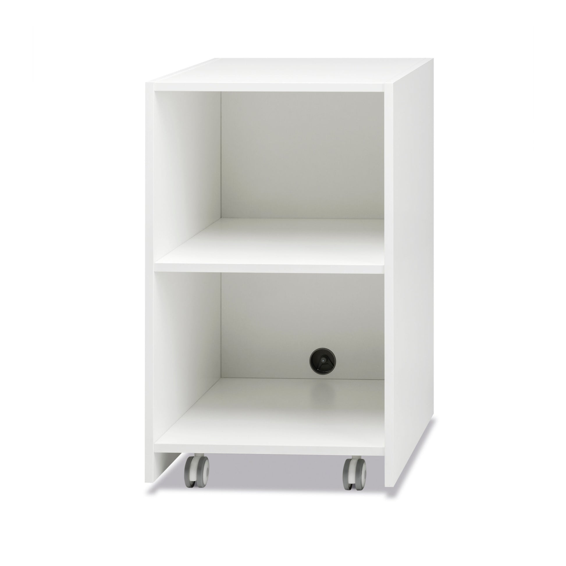 Struttura in nobilitato bianco, spessore da 19mm e passacavo sul fondo nella parte bassa, diametro 60mm.