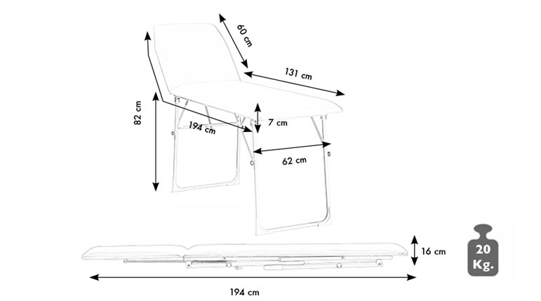 Il lettino per massaggi pieghevole per estetista 2 zone, ha una struttura in acciaio diametro 22 mm verniciato a polvere epossidica colore bianco e riesce a sopportare un peso massimo di 310 kg.