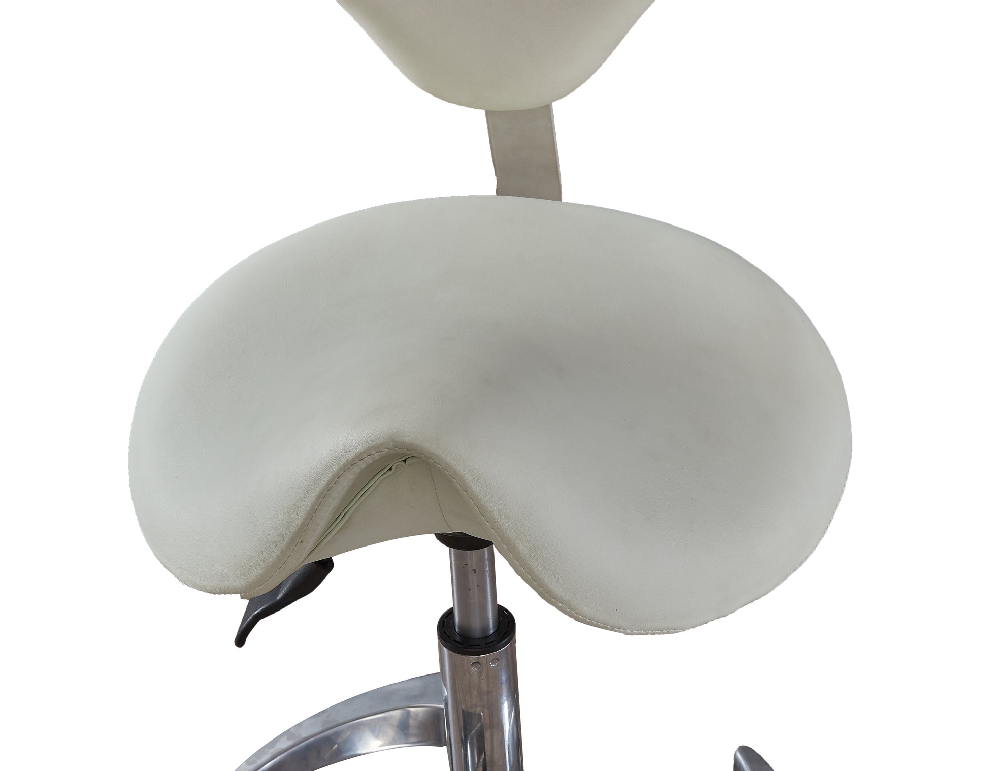 Lo sgabello a sella con schienale e seduta regolabili in altezza separatamente e base piroettante in acciaio è una scelta eccellente per chi cerca comfort, funzionalità e stile in un unico prodotto. Ideale per studi medici, centri estetici, saloni di bellezza e uffici, questo sgabello offre un supporto ergonomico e una grande versatilità.