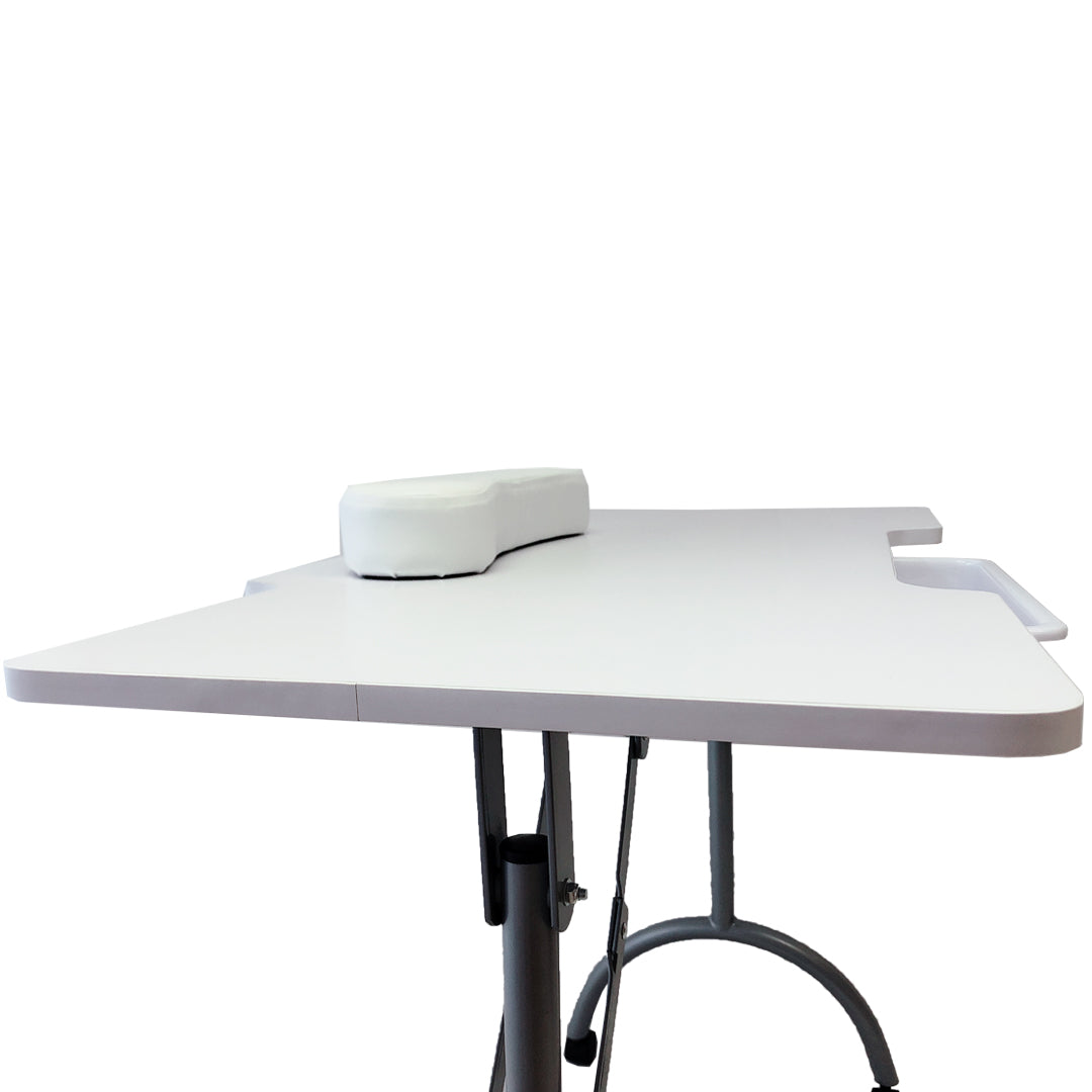 Esclusivo tavolo portatile pieghevole per manicure e ricostruzione unghie pensato per poter essere comodamente piegato e riposto dentro la sua pratica borsa (in dotazione) per poter effettuare servizi di manicure e ricostruzione unghie anche a domicilio.